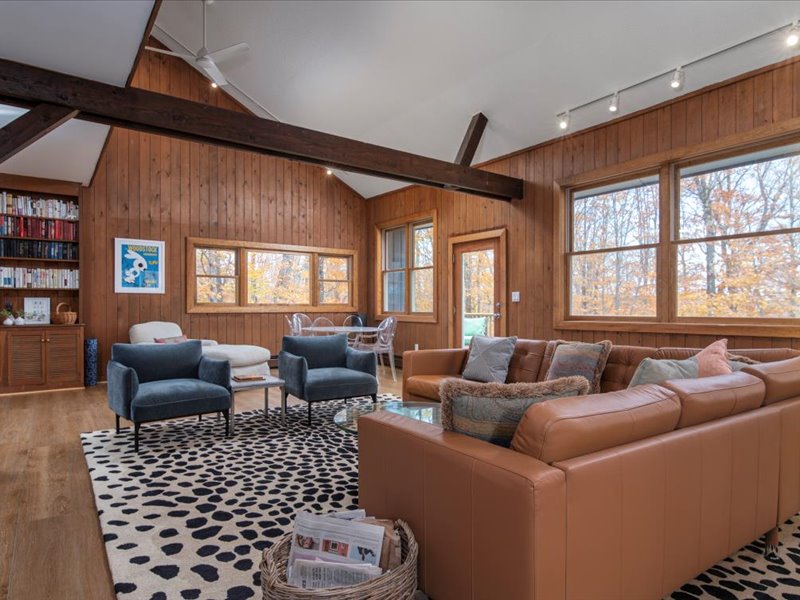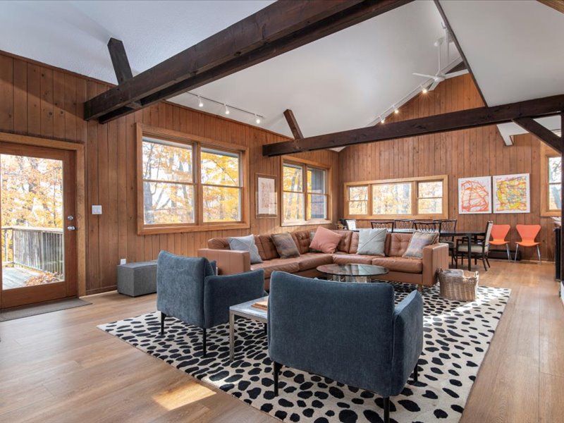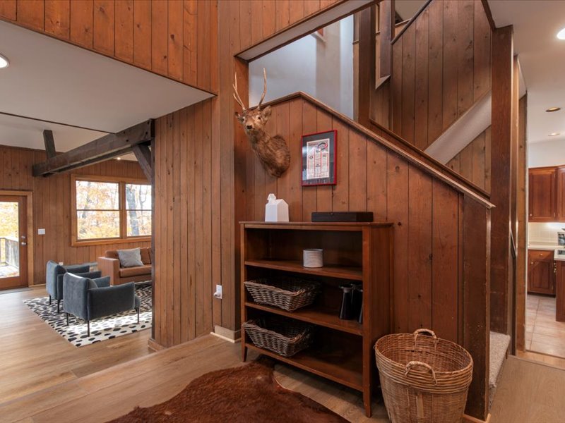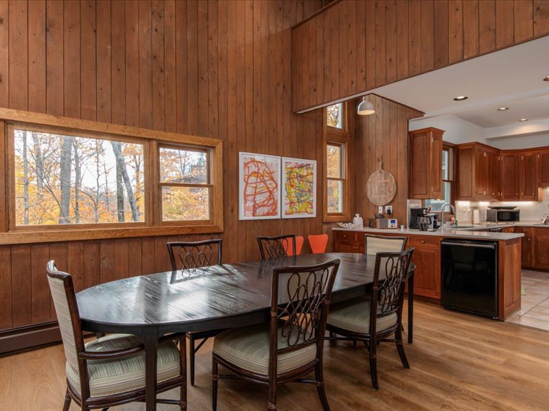 Nestled at 19 Middle Ridge Road at Stratton Mountain Resort, this spacious 7-bedroom home is perfect for large gatherings and family vacations. 4 bathrooms and two inviting living rooms; there’s ample space for relaxation and entertainment. Enjoy a friendly game of ping pong or unwind in the hot tub after a day at Stratton Mountain, just a short walk away. The main level features a cozy wood fireplace, adding warmth and charm to the home. Each of the well-appointed bedrooms offers flexible sleeping arrangements, including combinations of queens, twins, and a trundle bed, ensuring comfort for all guests.